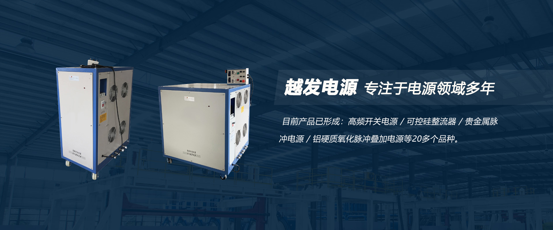 紹興市越發(fā)電器有限公司位于歷史文化名城紹興孫端工業(yè)區(qū),環(huán)境優(yōu)美,交通便利。公司具有多年的電源生產(chǎn)經(jīng)驗(yàn),專(zhuān)業(yè)從事金屬表面處理電源的研發(fā)和生產(chǎn)。 目前產(chǎn)品已形成:高頻開(kāi)關(guān)電源,可控硅整流器,貴金屬脈沖電源,鋁硬質(zhì)氧化脈沖疊加電源等20多個(gè)品種,能滿(mǎn)足金屬表面處理領(lǐng)域不同場(chǎng)合,不同工藝的要求,并可根據(jù)客戶(hù)要求,定制各種特殊非標(biāo)準(zhǔn)電源,有效解決了特殊客戶(hù)的要求。 公司堅(jiān)持以質(zhì)量創(chuàng)效益,以服務(wù)拓市場(chǎng)的經(jīng)營(yíng)理念,走科技創(chuàng)新之路,取得了驕人的成績(jī)。公司憑借過(guò)硬的質(zhì)量和優(yōu)良的服務(wù),勇敢進(jìn)取,目前已形成立足浙江,輻射全國(guó)的銷(xiāo)售,服務(wù)網(wǎng)絡(luò),呈現(xiàn)出良好的營(yíng)銷(xiāo)勢(shì)頭。新時(shí)期“越發(fā)”將以更優(yōu)的服務(wù),更高的性?xún)r(jià)比,竭誠(chéng)為廣大用戶(hù)服務(wù)。